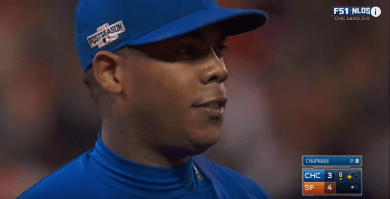 The crowd is going insane! An unbelievable moment to put the Giants in front 4-3! All Chapman can do is walk around with that “are you kidding me” smirk on his face. You know the one.